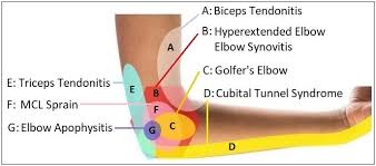 - Pain on the inside of the elbow